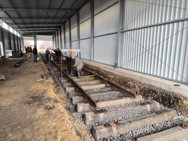 Gleisbau in der neuen Fahrzeughalle zurück